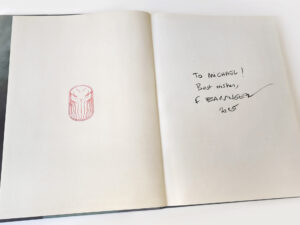 L’artiste apposera son tampon personnel et écrira une dédicace personnalisée :
